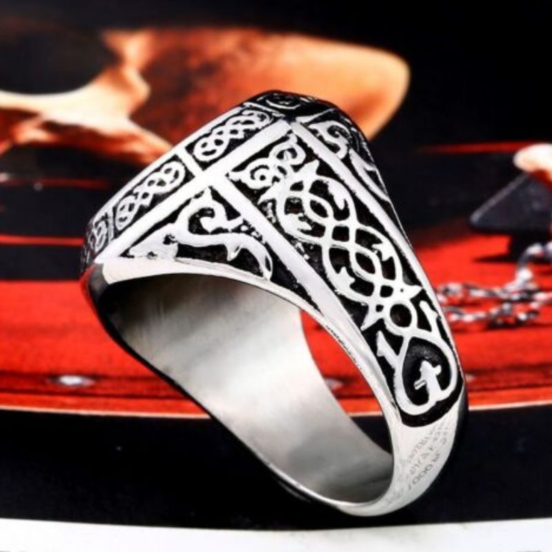 - Une chevalière en acier pour les hommes qui désirent mettre en avant leur puissance et leur ferveur,