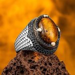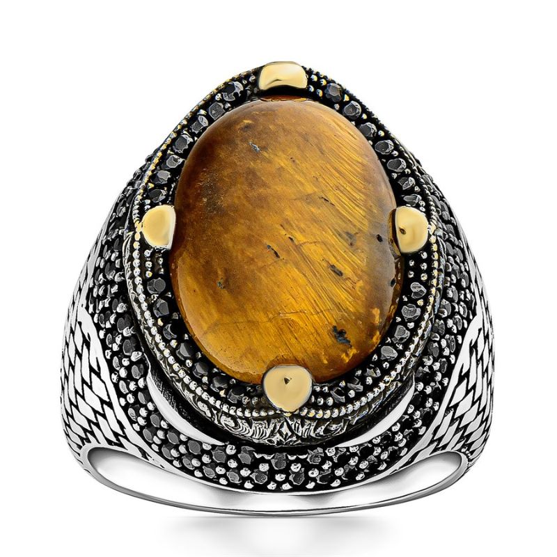 Descriptif technique de l’anneau bague ancienne œil de tigre pour homme