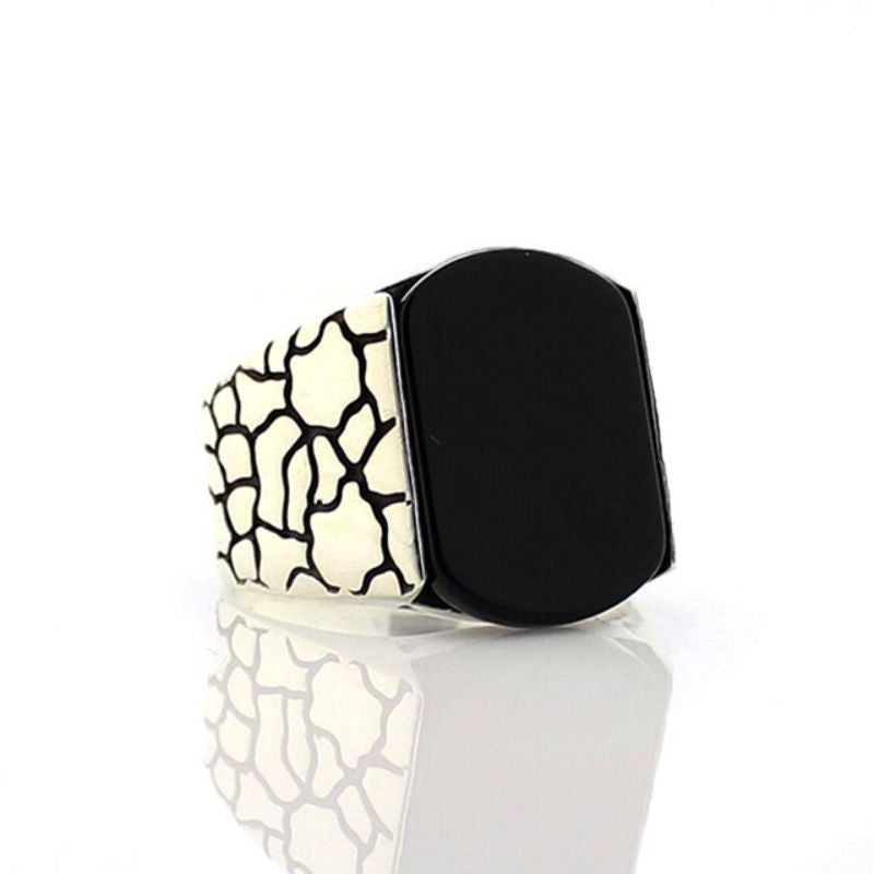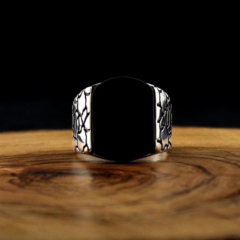 - Sublime bague avec une pierre d’onyx noir rectangulaire,