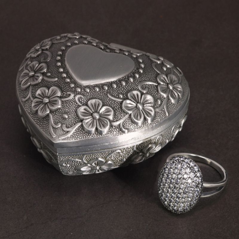 - Bijou en argent livré dans une boîte argentée avec gravures.
