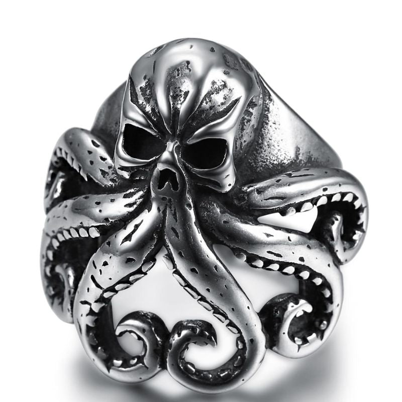 Adoptez un style biker gothique original avec la bague pieuvre poulpe