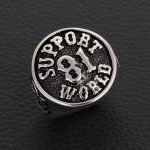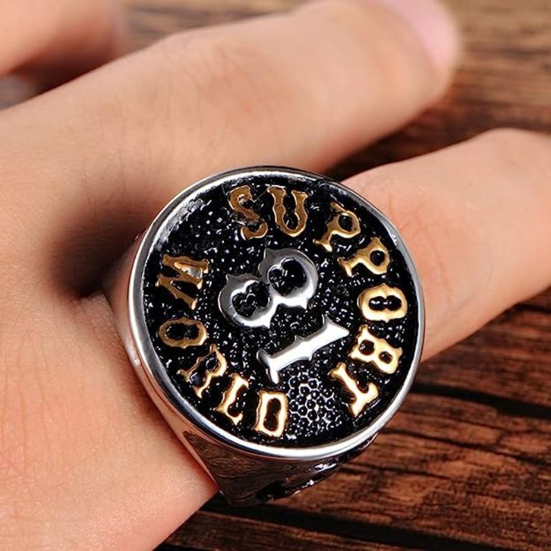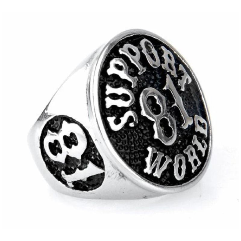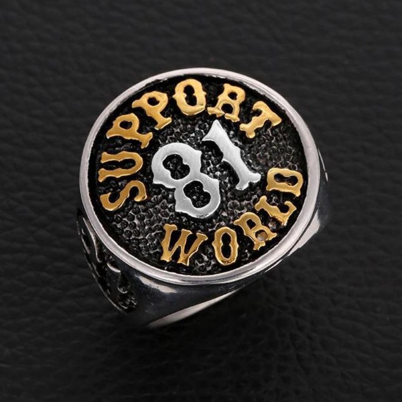 Avec notre bague support 81 world, affirmez votre fidélité envers la fraternité moto mondiale. Conçue en acier inoxydable, ce bijou est un parfait équilibre entre solidité et raffinement. L’emblème 81 World, finement travaillé, se distingue et confère à cette bague un style inimitable.