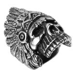 La chevalière en acier inoxydable métal argenté comporte une gravure distincte représentant avec précision une tête de mort d’un chef indien orné d’une coiffe de plumes. Ce bijou pour homme garde son éclat brillant et ne se dégrade pas avec le temps.