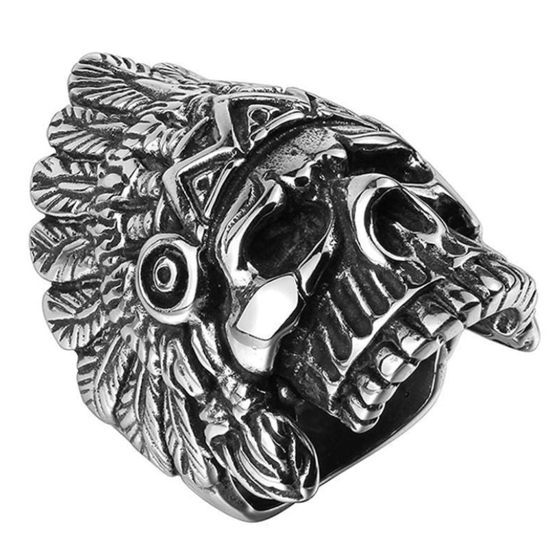 Exprimez votre caractère rebelle et indomptable grâce à la bague tête de mort indien pour homme