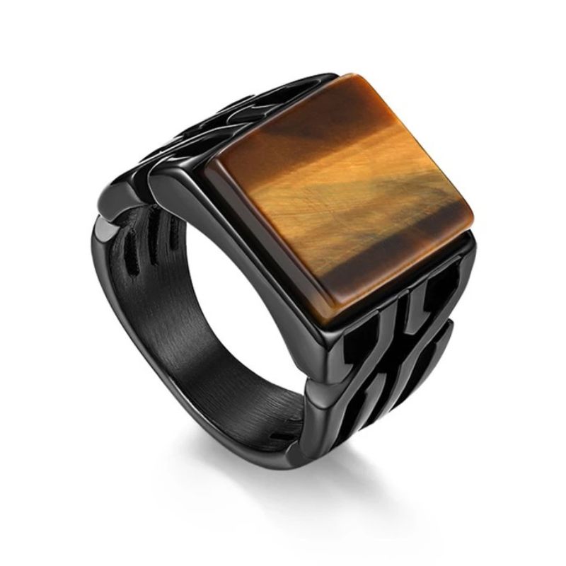 Adoptez un style contemporain avec la chevalière œil de tigre rectangulaire