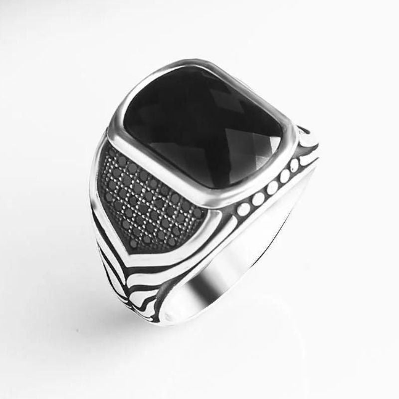Faites forte impression avec la Chevalière Homme Argent Pierre Noire, un bijou unique