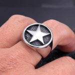 La perfection de la Chevalière Homme Étoile réside dans ses détails. Fabriquée en acier inoxydable haut de gamme, elle est aussi résistante qu’esthétique. La finition noir mat met en valeur l’éclat de l’étoile, créant un contraste frappant qui capte l’attention.