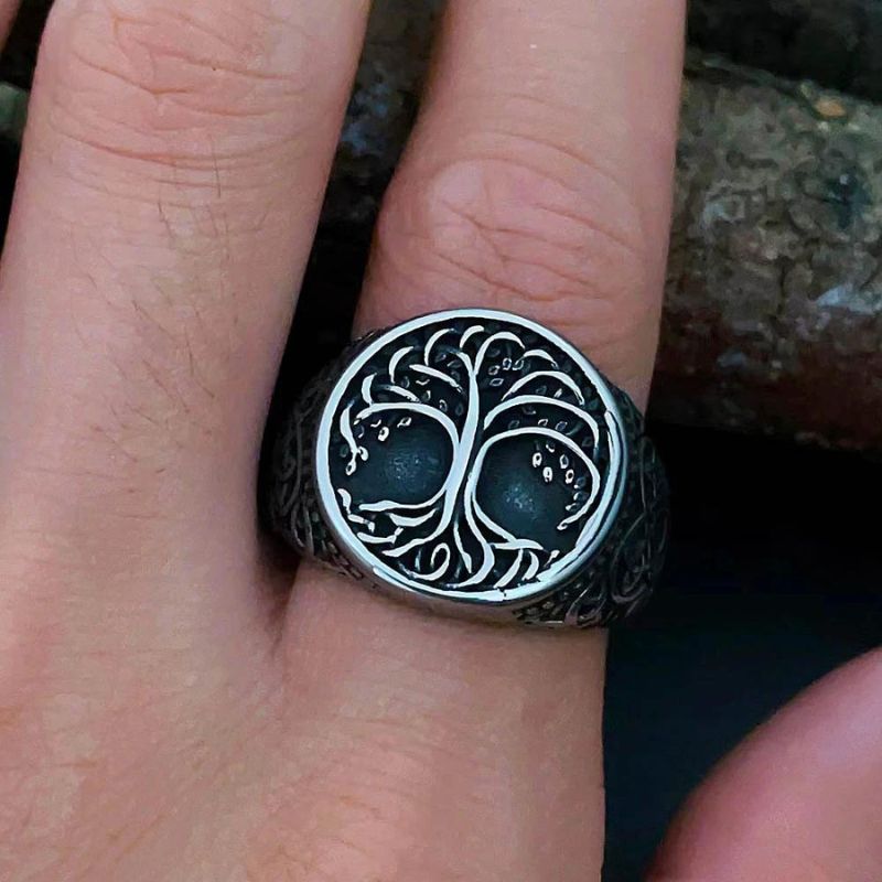 - Un raffinement sans égal avec la chevalière Yggdrasil en acier inoxydable,